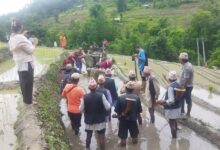 Nepali traditional Naumati baja, five pairs of bullocks, 29 Ropahars (paddy planters) and 18 Bauses…